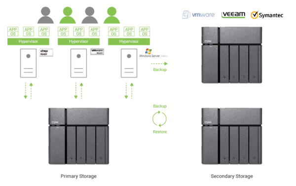 Устройства XN3004T сертифицированы с VMware® Ready™, Citrix® Ready™ и Microsoft® Hyper-V™. Не важно, какая у вас среда виртуализации, вы можете использовать XN3004T с любой платформой. XN3004T можно использовать как в качестве основной системы хранения, так и в качестве резервной. В качестве резервного устройства XN3004T поддерживает большой список резервного ПО для виртуальных машин, что обеспечит полную сохранность ваших данных.