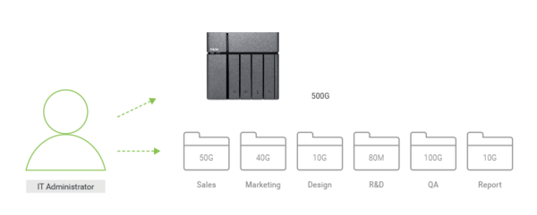 Контролировать объем пространства хранения можно путем назначения квот (ограничений) на объемы данных, которые могут хранить пользователи. Ограничения могут применяться как к отдельным папкам, так и ко всей системе в целом.