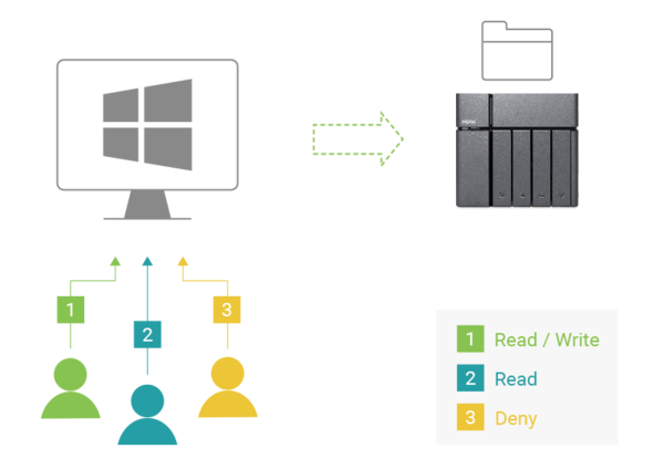 Для пользователей можно создавать множество учетных записей и общих папок, доступ к которым будет осуществляться согласно политикам, настроенными IT администраторами.